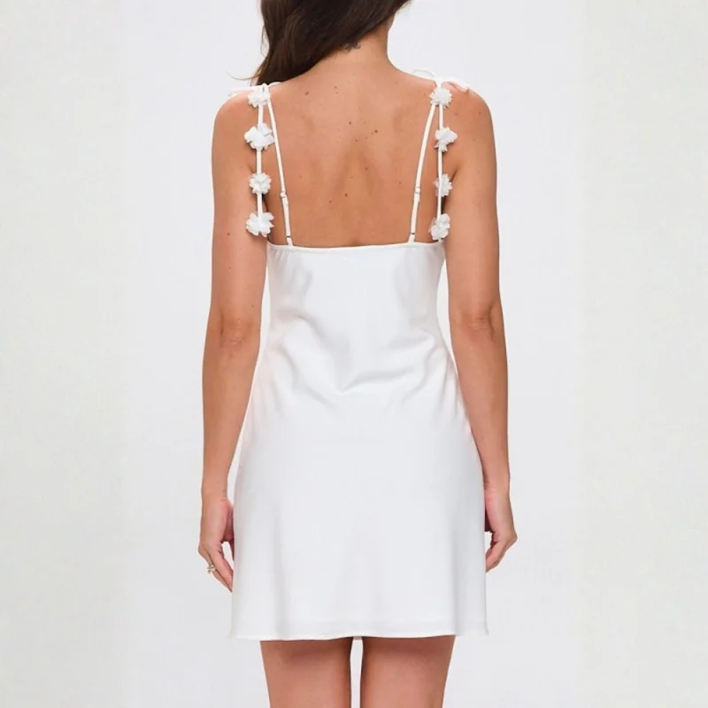 Este hermoso vestido corto está confeccionado en brodery marfil, que le aporta un toque delicado y sofisticado. su diseño presenta tiras cruzadas y regulables en la espalda, lo que permite un ajuste personalizado y favorecedor. la falda, con corte a, ofrece una caída fluida y elegante, mientras que el cierre en la parte posterior garantiza un ajuste perfecto. ideal para lucir radíante en cualquier ocasión especial. composición: 100% poliéster.
