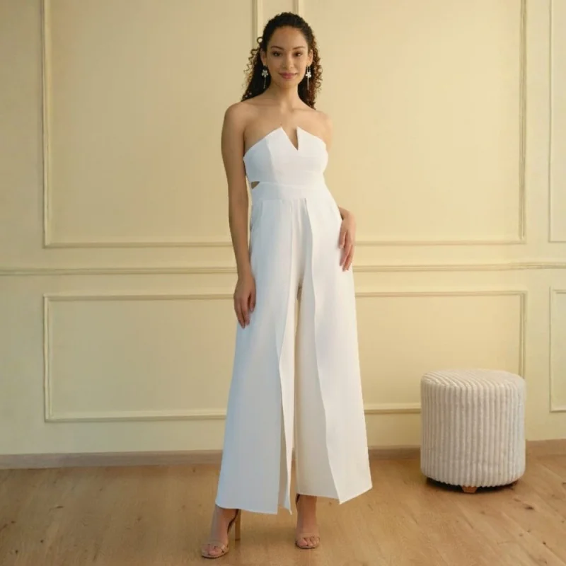 Enterizo palazo, nuestro hermoso enterizo luciana, es de corte strapless con tiras delgadas con regulador si no deseas que sea strapless.