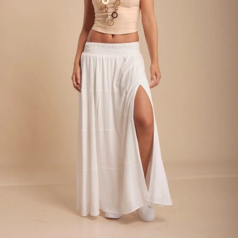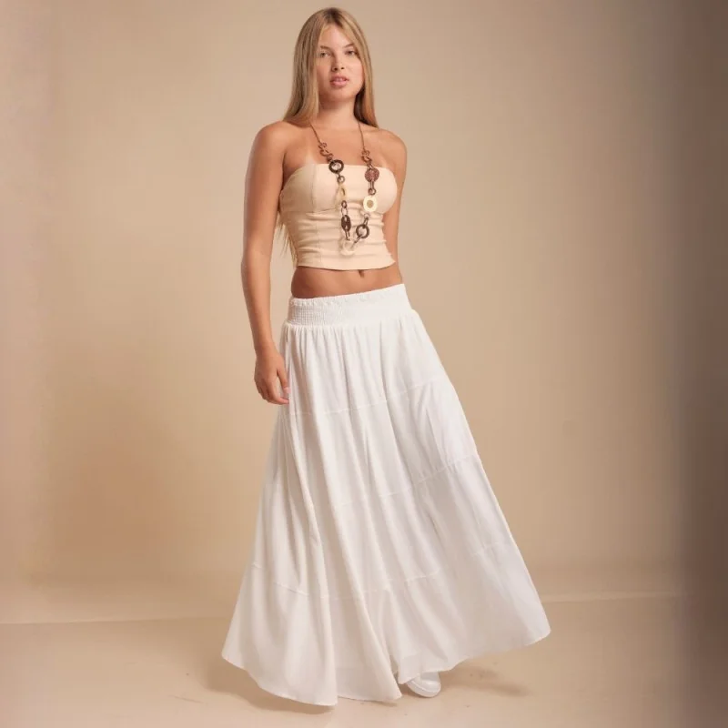 Hermosa falda larga de algodón, liguera y cómoda con pretina en la cadera.