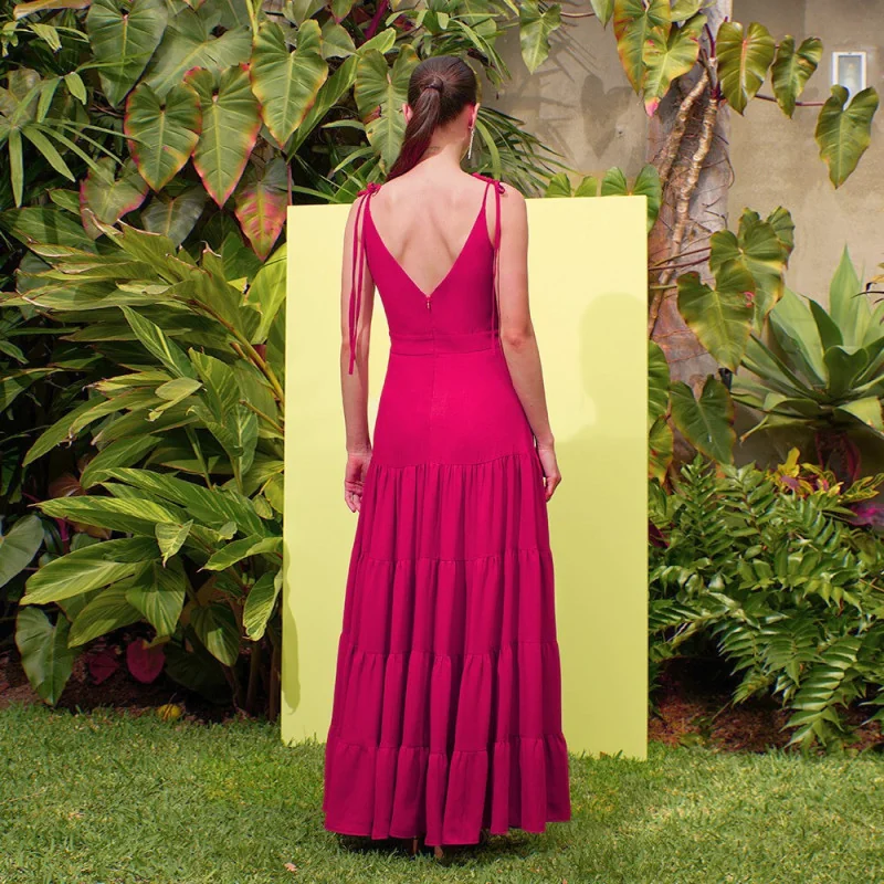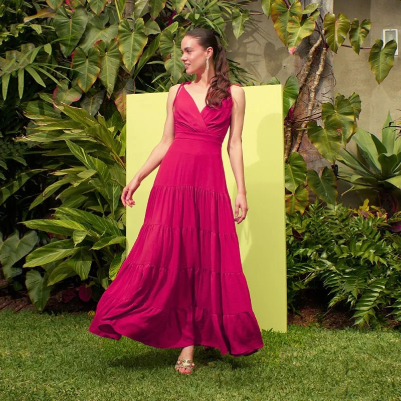 Hermoso vestido de tiras delgadas y escote cruzado en el busto para un mejor realce.