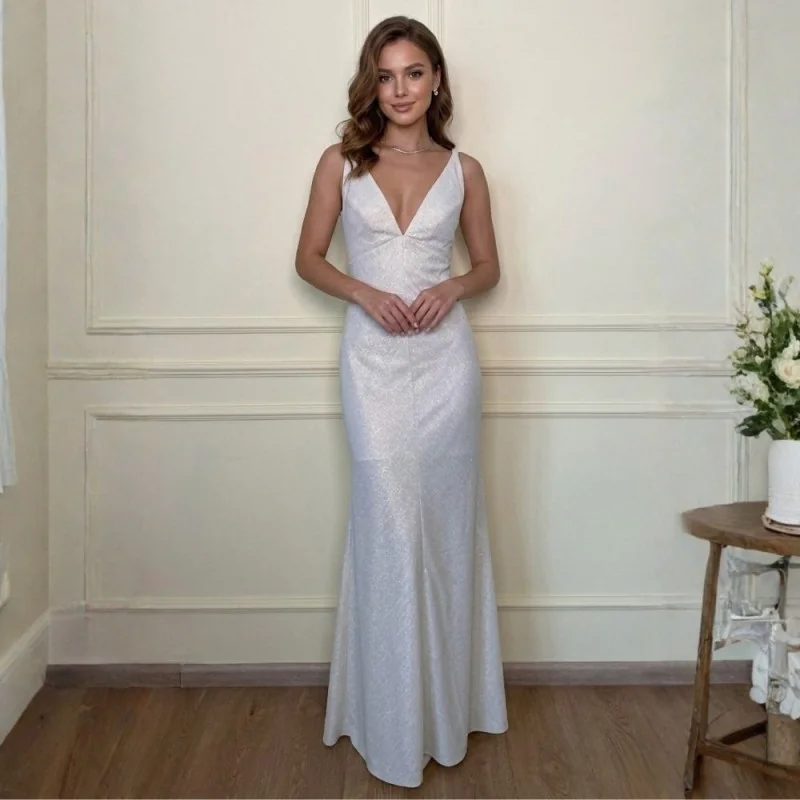 Vestido maxi en licra escarchada. cuenta con copas internas para un mejor realce del busto y corte en la cintura cruzado. la falda es tipo sirena con encarrujado a los lados. sexy tiroléss en la espalda. composición: .