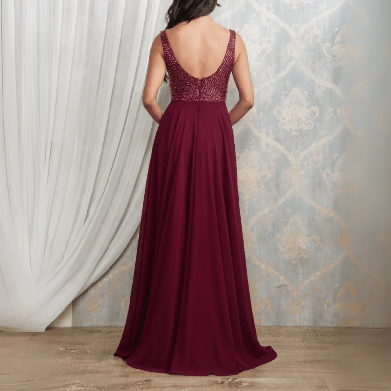Hermoso maxi vestido con aplicaciónes de pedrería en el corpiño. la falda tiene vuelo mundo, y una sexy abertura en la pierna. súper elegante y ligero. composición: .