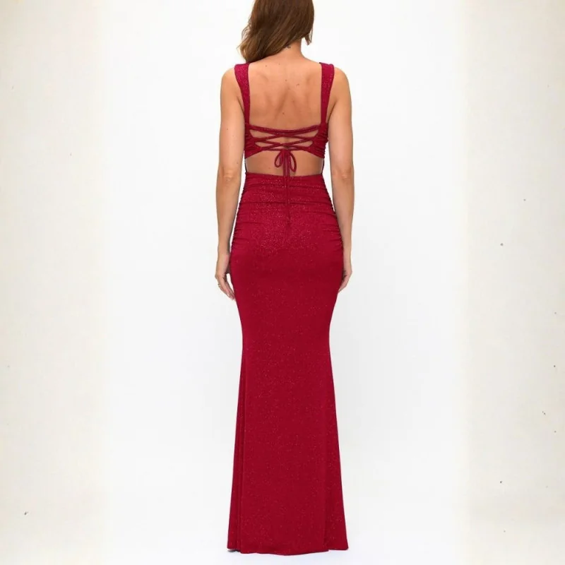 Vestido maxi en licra escarchada.