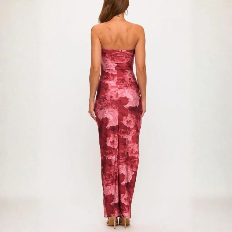 Bello vestido de licra americana, strapless con copas incorporadas.