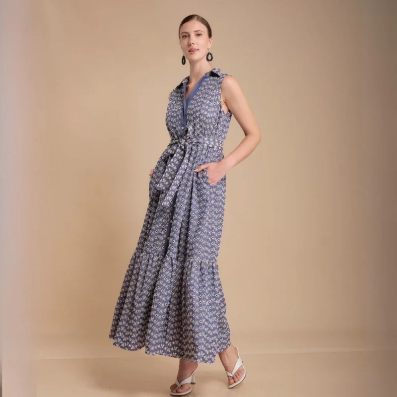 Hermoso vestido largo con ajuste de 3 botones en el cuello y escote en caída. satín sublimado con temática floral, perfecto para tus eventos de campo. composición: .