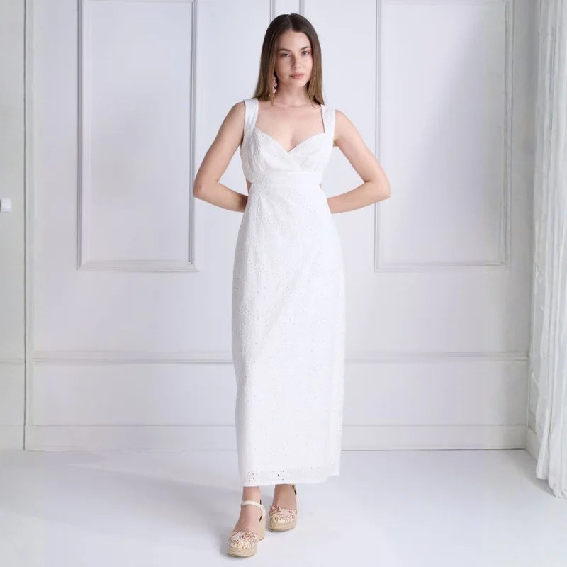 Hermoso vestido largo de brodery con detalle en la espalda, fresco y perfecto para la temporada de verano.