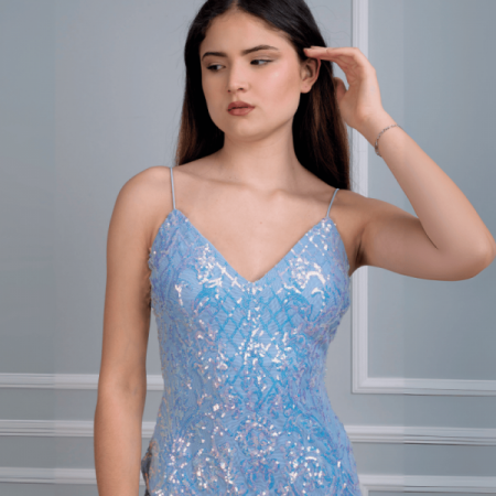 Vestido cocktail pallete full lentejuelas, entalla al cuerpo.