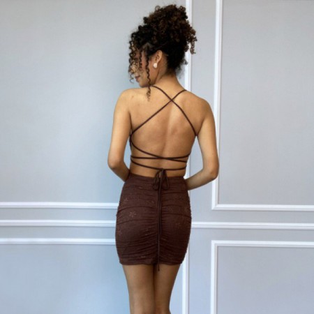 Este hermoso vestido corto está confeccionado en brodery marfil, que le aporta un toque delicado y sofisticado. su diseño presenta tiras cruzadas y regulables en la espalda, lo que permite un ajuste personalizado y favorecedor. la falda, con corte a, ofrece una caída fluida y elegante, mientras que el cierre en la parte posterior garantiza un ajuste perfecto. ideal para lucir radíante en cualquier ocasión especial. composición: 100% poliéster.