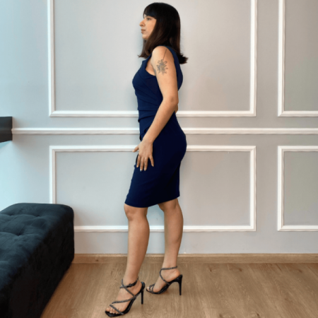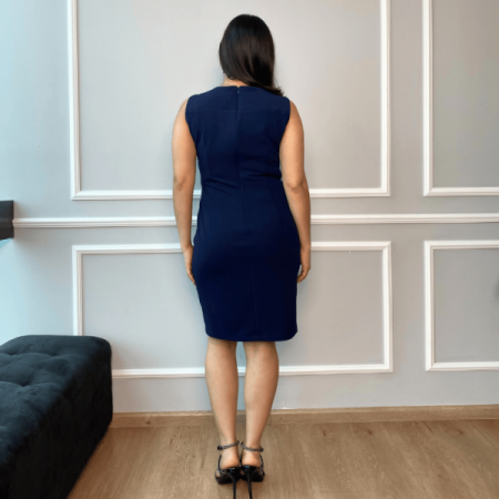 Vestido corto, cocktail de cuello redondo con detalle de pliegues que inician a un lado de la cintura y se expande, lo que hace que se enfoque en la cintura y favorece al estilizado de la silueta. composición: 100% poliéster.