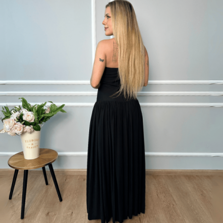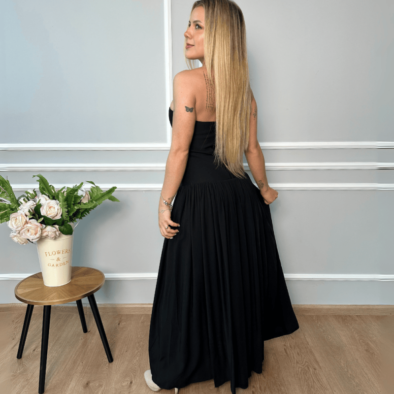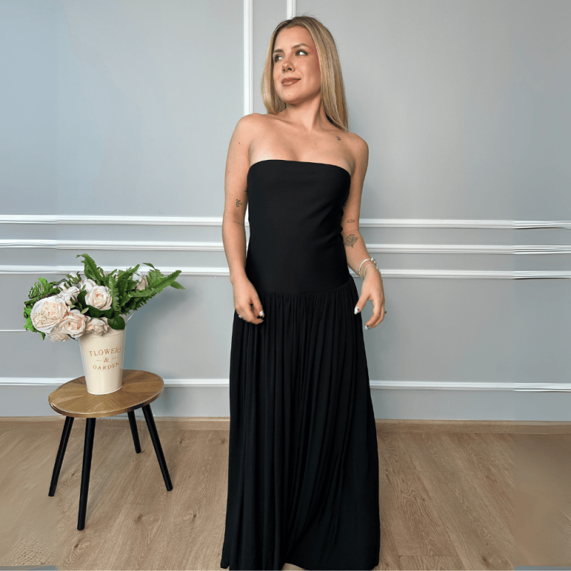 Vestido midi strapless con todo el corpiño icrado.