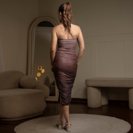 full drapeado a los costados y strapless con copas para mayor realce del busto, si buscas un vestido que moldee tu figura.